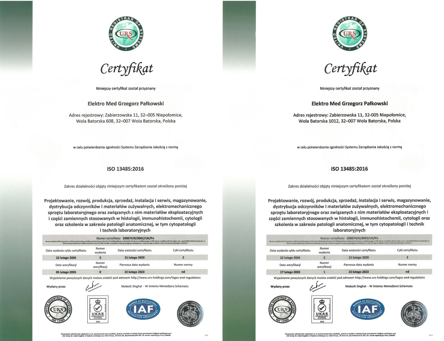 Z satysfakcją informujemy, że pomyślnie zakończyliśmy audyt recertyfikujący naszych systemów zarządzania zgodnych z normami ISO 13485:2016 oraz ISO 9001:2015. Przeprowadzona weryfikacja potwierdziła, że wszystkie nasze procesy, procedury oraz stosowane rozwiązania organizacyjne pozostają w pełnej zgodności z wymaganiami międzynarodowych standardów.